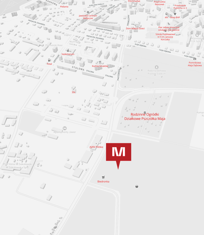 M Park Jawor is located right next to national road 374, which becomes Piastowska Street leading directly to the city centre. Officially, it is situated in Zębowice, adjacent to Jawor. A car park with as many as 300 spaces has been prepared for visitors.